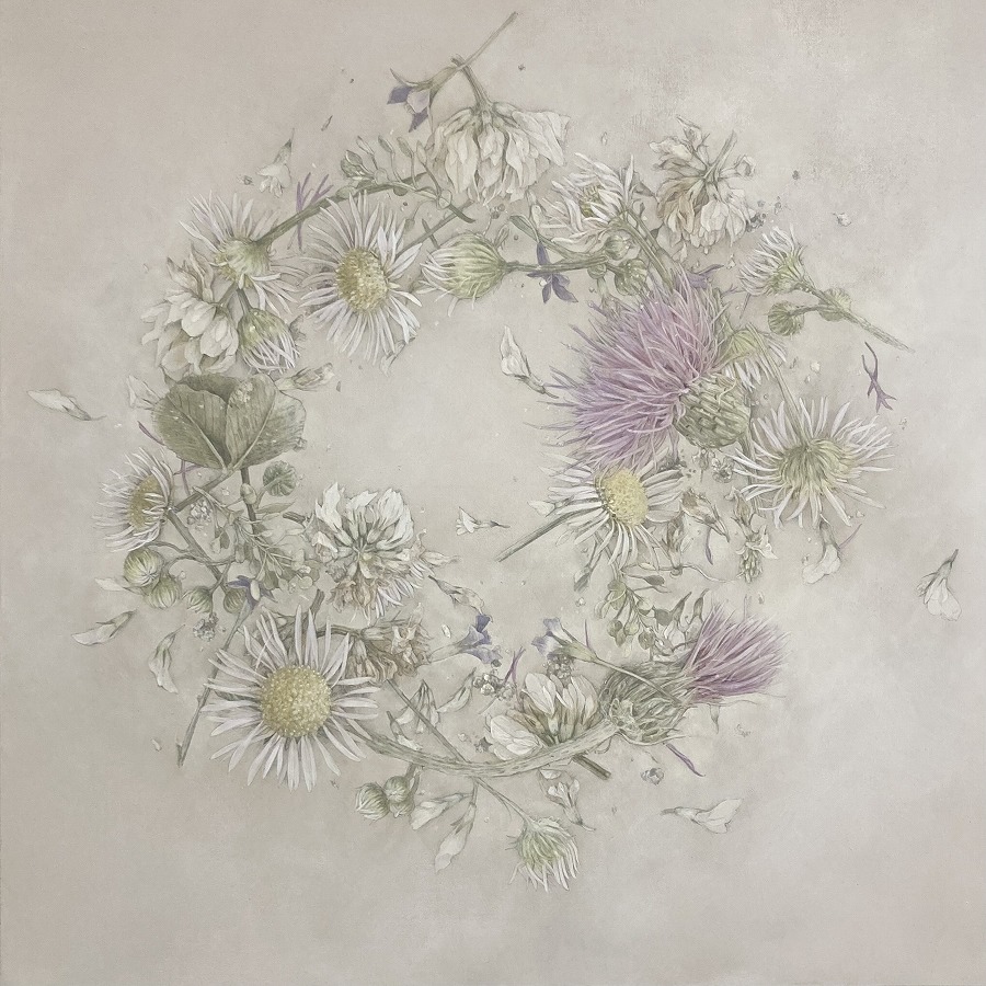 ![]() 稲田早紀 「ねんねこを抱いて」 アクリル・鉛筆、キャンバス 41.0×41.0cm 2025年